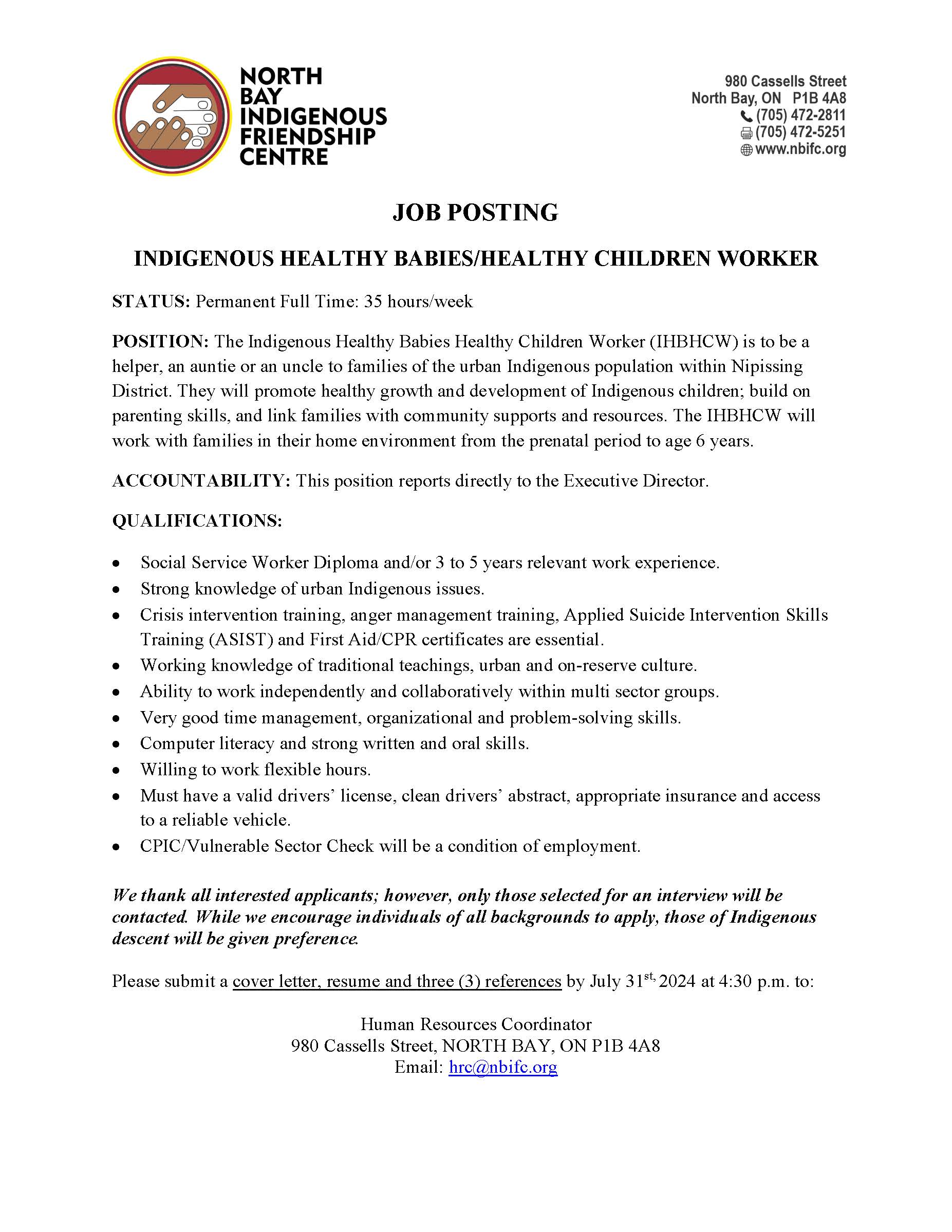 IHBHC Worker job posting July 2024